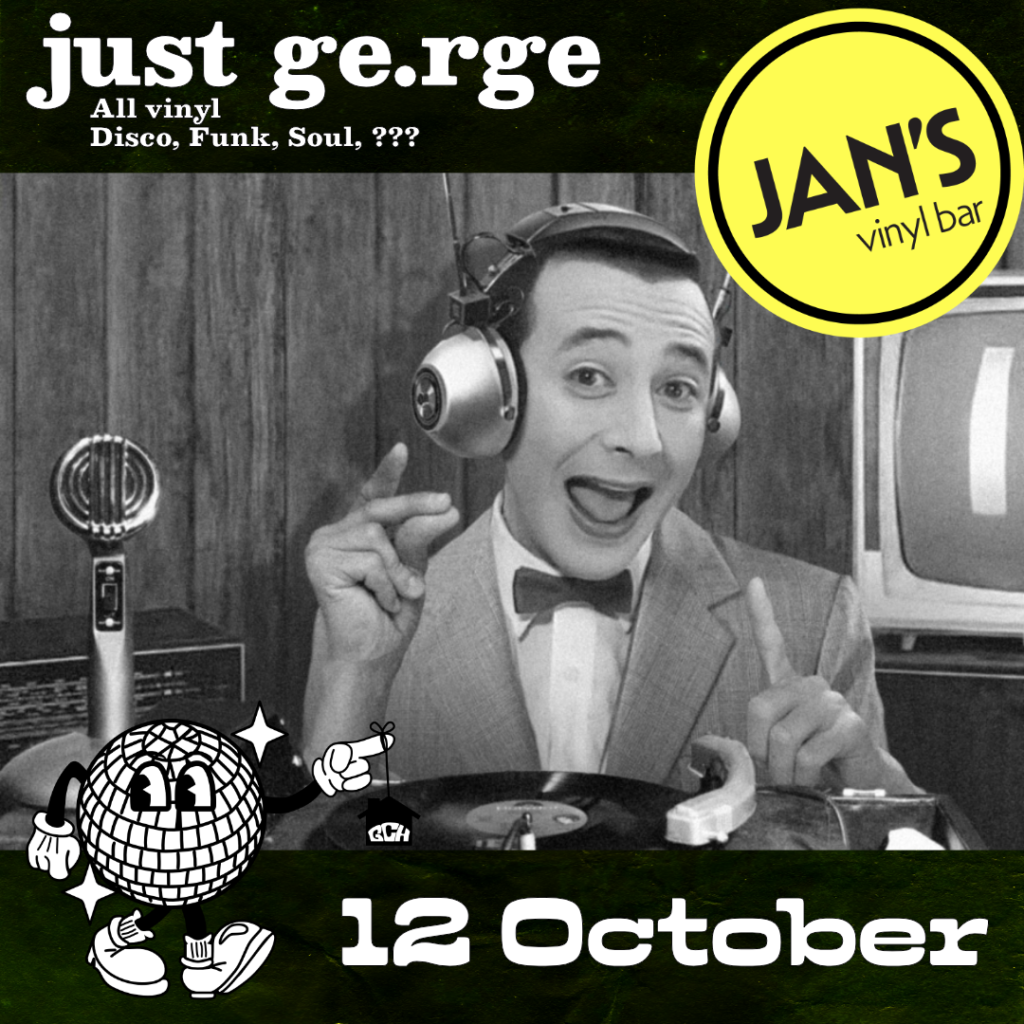 Just Ge.rge plays his favorite disco, funk, and soul records at a polite volume at Jan’s Place on Oct 12. No Cover, 21+